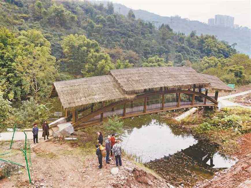 In Dujia Village, Xinglong Town, Yubei District stands a special arch bridge, Guanyin Bridge, which is 21 meters long, 3 meters wide and is made of 716 pieces of bamboo.