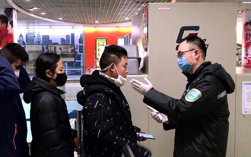 Temperature check at the entrance of CRT, photo by Yang Xinyu