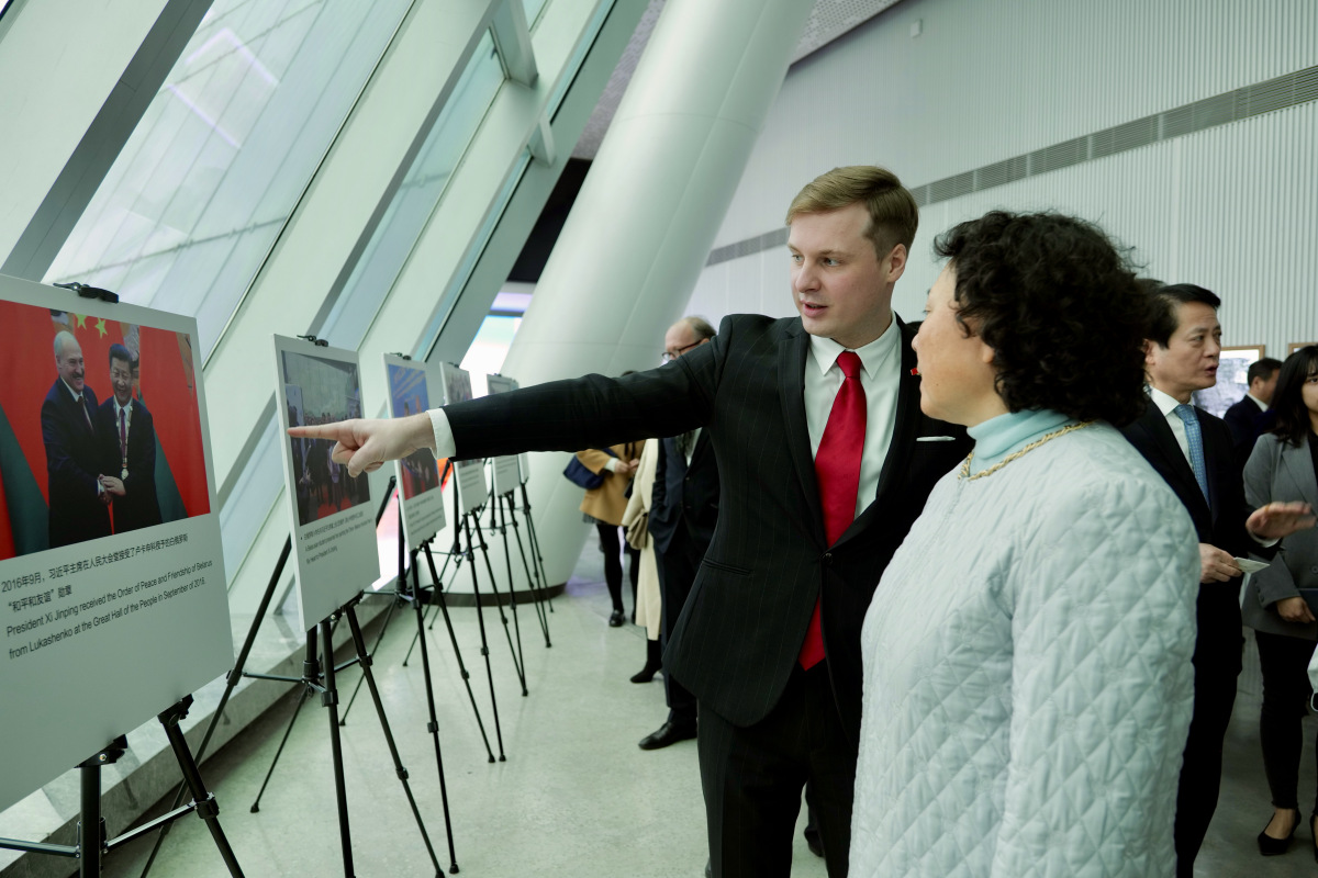 The photo exhibition showcased the history and development of diplomatic exchanges between China and Belarus over the past three decades, ranging from the first visit of Belarusian President Lukashenko to China in 1991, President Xi’s visit to China-Belarus Great Stone Industrial Park in Minsk in 2015, to the arrival of Chinese anti-epidemic supplies for Belarus in 2020.