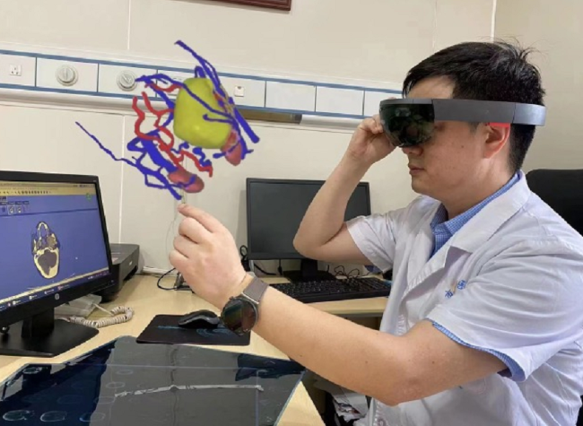 MR technology allows CT and MRI images to be imported into the software for 3D reconstruction. The 3D models will then be downloaded to the holographic head-mounted display, enabling doctors to see real-time photos. Doctors can see through the skin to know the status quo of tumors and their surrounding blood vessels and tissues.