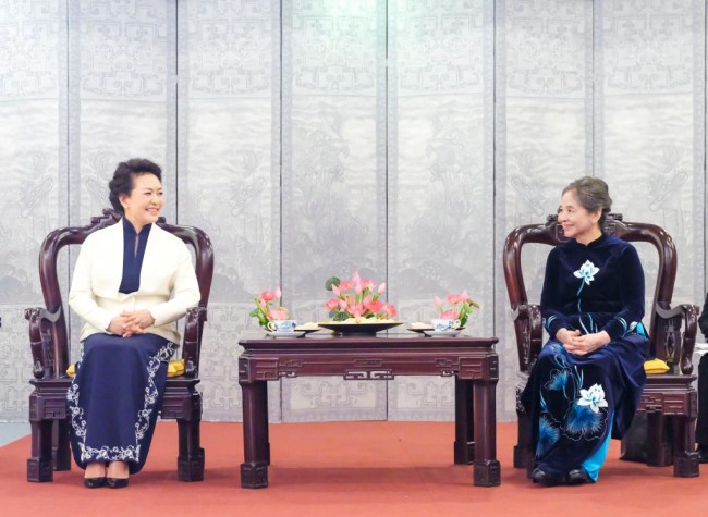 Peng held cordial exchanges with Ngo Thi Man and Vietnamese women representatives, and shared her work in promoting the cause of women and children as a UNESCO special envoy for the advancement of girls' and women's education.