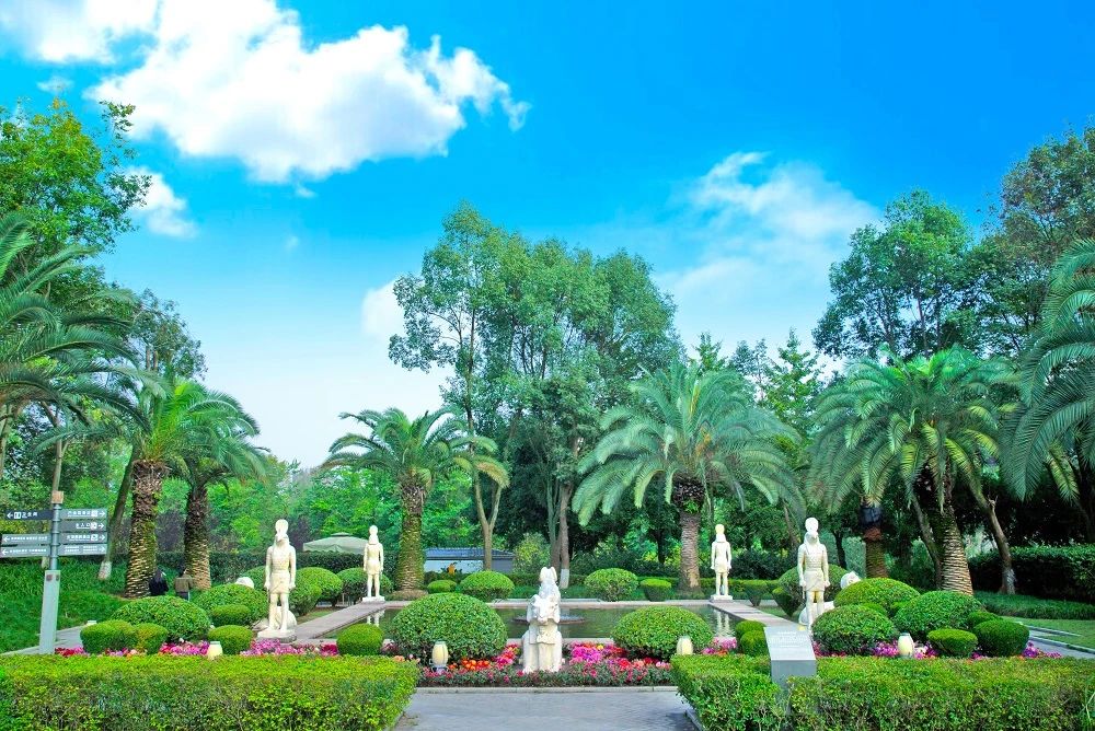 The design of the Aswan Garden draws inspiration from ancient Egyptian palace gardens, showcasing the country's ancient relics and modern civilization achievements. During the construction phase, a delegation from Aswan Province's government visited Chongqing to discuss the selection and design of the Aswan Garden.