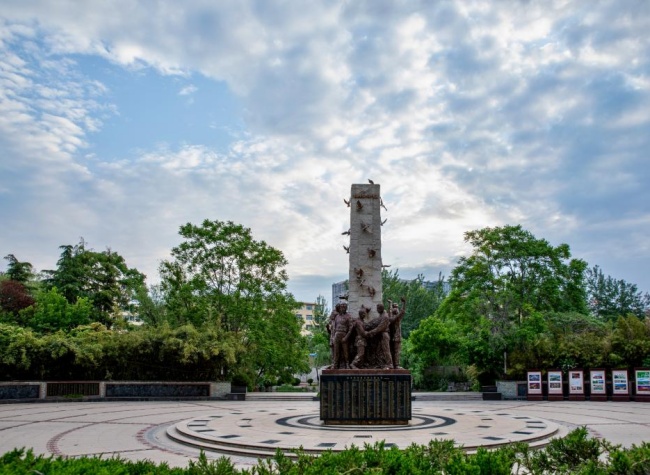 A square commemorating peace is pictured at a museum transformed from the Weihsien concentration camp in Weifang, east China's Shandong Province, on May 2, 2025. (Photo/Weihsien West Civilians Concentration Camp Site Museum)