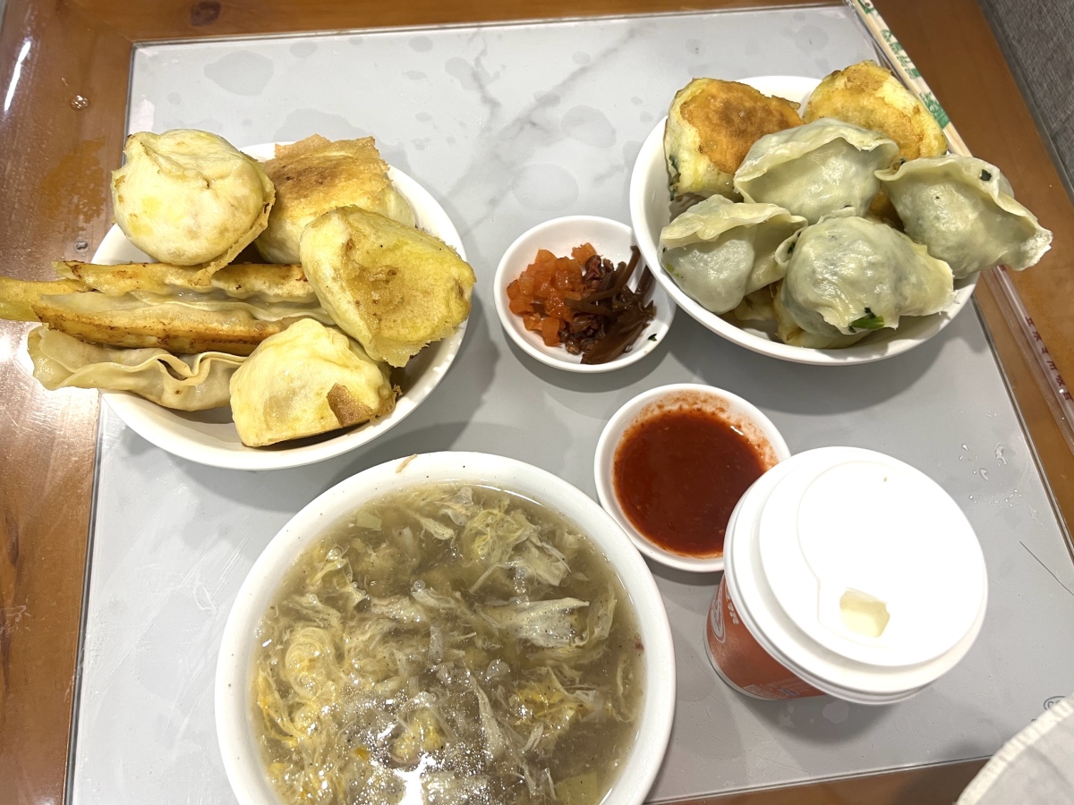 A typical Xuzhou breakfast features fried buns, potstickers, and spicy soup. (Photo/ Vivian Yan)