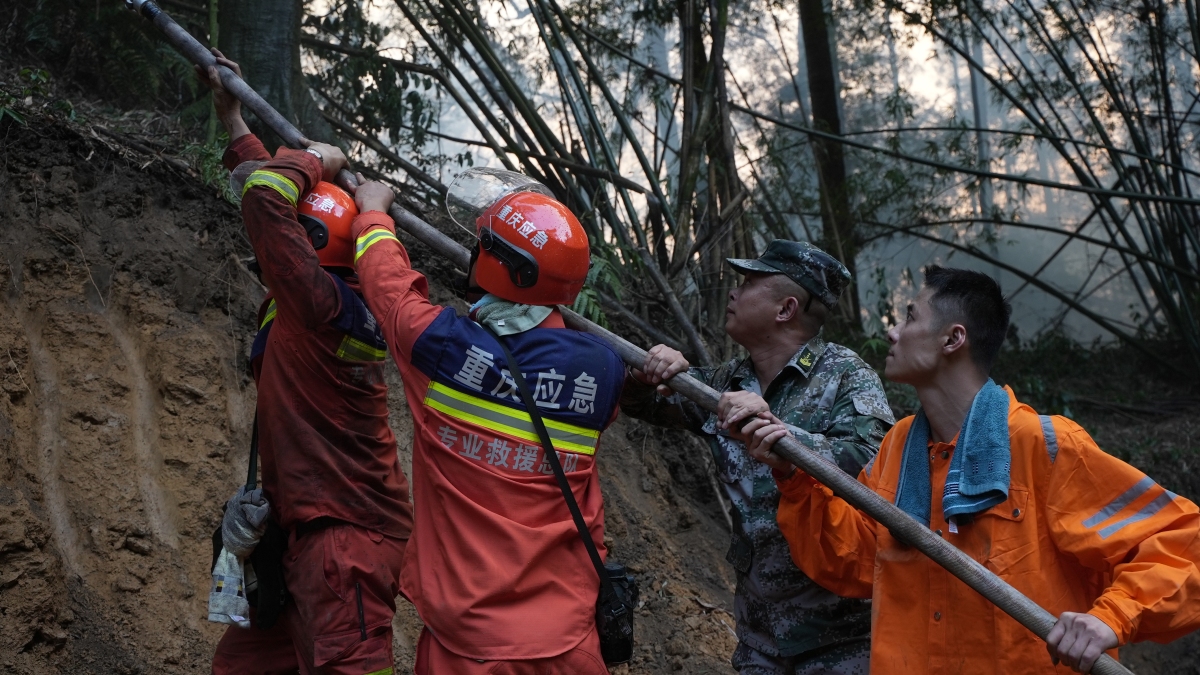 In August 2022, Chongqing's rescue team was deployed to battle mountain wildfires. (Photo/Chongqing Emergency Management Bureau)