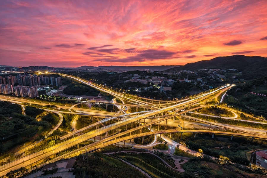 Panlong Interchange is a landmark example of Chongqing’s intricate interchange bridge network. (Photo/Chen Liang)