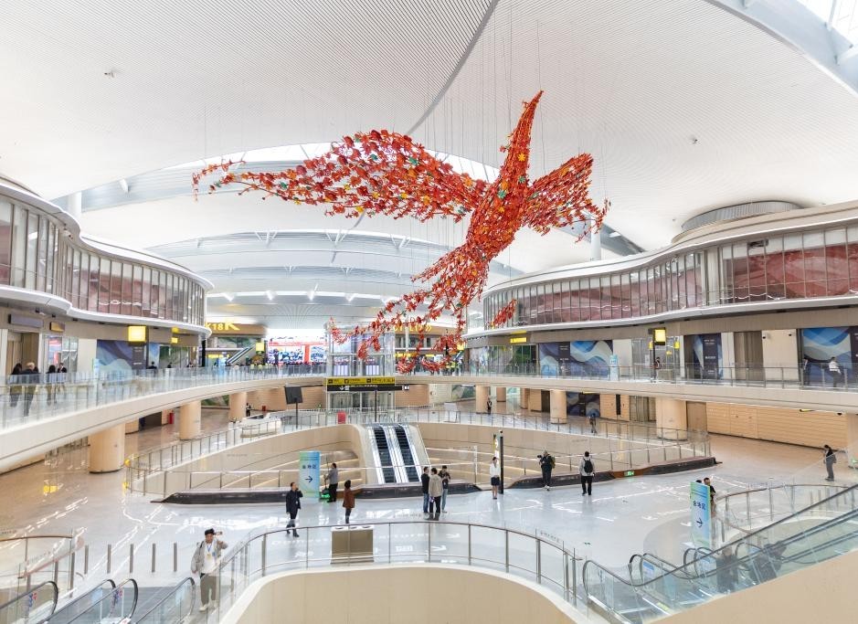 The T3B terminal of Chongqing Jiangbei International Airport serves as the “first window” showcasing Chongqing’s aesthetics to travelers from around the world. (Photo/Huang Wei)