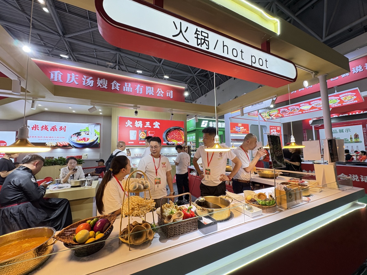 Exhibitors at the 10th China (Chongqing) International Hotpot Industry Expo showcase hotpot products. (Photo/Zheng Ran)