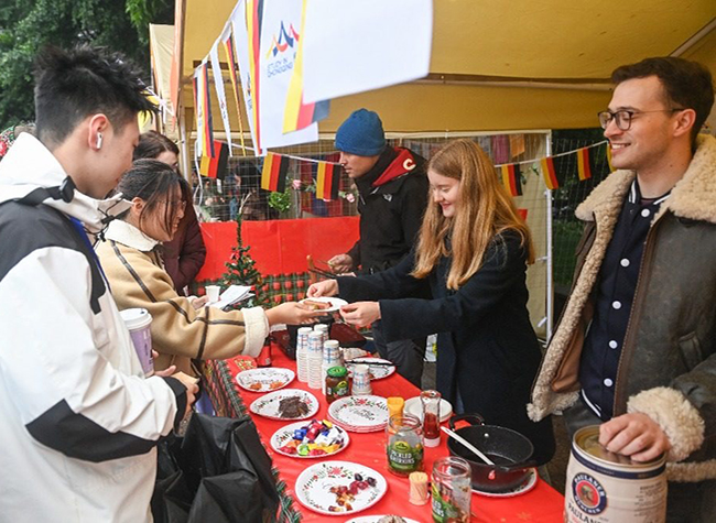 On December 6, 2024, international students tasted cuisines from around the world at the “World Culture Fair” held on the Yubei Campus of Southwest University of Political Science and Law. (Photo/Zheng Yu)