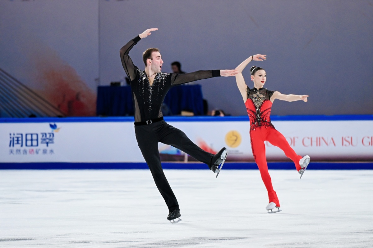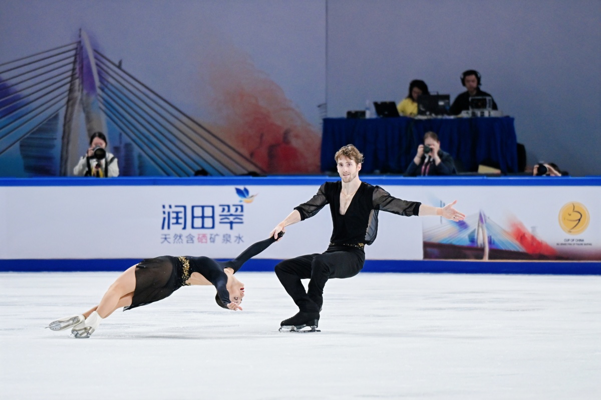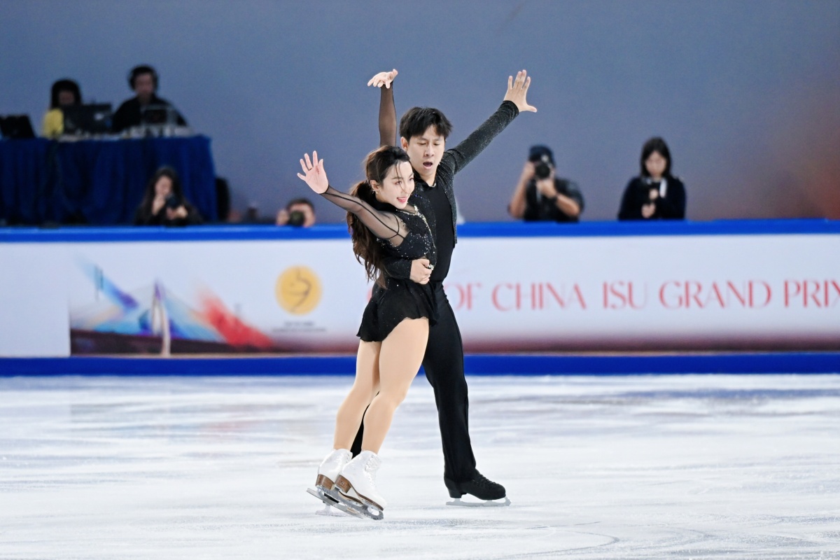 Chinese pairs skaters Sui Wenjing and Han Cong, gold medalists at the Beijing 2022 Winter Olympics, made a high-profile return to competition at this year's Cup of China as part of their preparations for the Milan-Cortina 2026. Performing to "Carmen" and "Poetic Dance: The Journey of a Legendary Landscape Painting," the duo demonstrated standout throws and twists, along with world-class artistry, though they showed slight rust compared to their peak form. They scored 202.92 points, ranking third for the bronze medal.