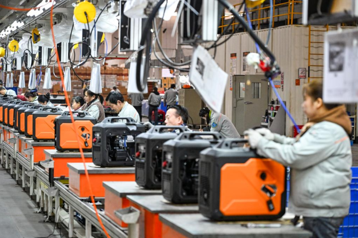At a private machinery manufacturing company in Chongqing, workers operate a variable frequency generator production line. (Photo/Wang Quanchao)