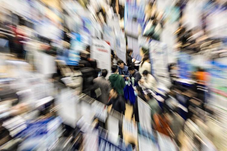 Students learn about employment opportunities at a job fair on March 26, 2025. (Photo/Xinhua)