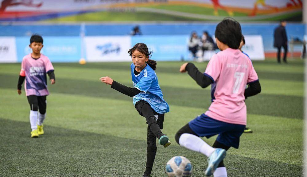 Players from the girls' football team of Sanhe Primary School in Shizhu, Chongqing, compete fiercely on the pitch. (Photo/Long Fan)