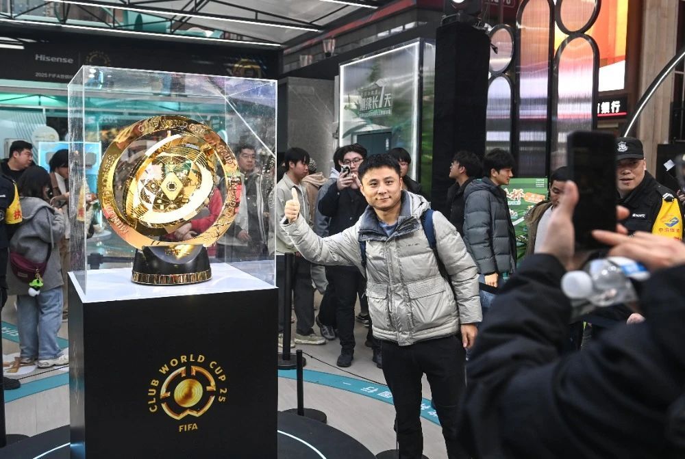The FIFA Club World Cup 2025 trophy made its debut in China, drawing many Chongqing residents to see it. (Photo/Zheng Yu)