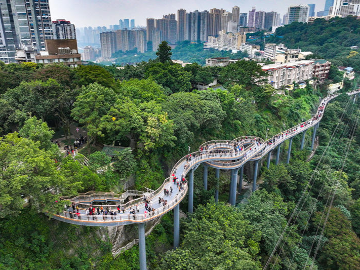 Chongqing - On Nov 12, one of Chongqing's most anticipated new attractions — the Eling Skywalk, a ribbon-like pathway suspended along the mountainside — officially opened to the public, drawing long queues of visitors eager to experience this new piece of "romance in the air."