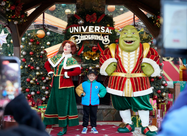 Visitors are posing for photos at Universal Beijing. (Photo/Xinhua)