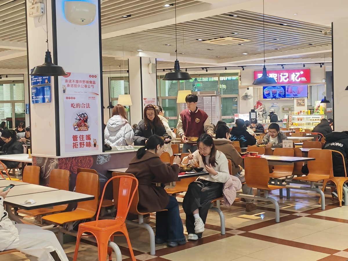 The lunch meetup came from a spontaneous post Zhang wrote that morning: “Craving cast-iron stew! Anyone want to go together?” Within minutes, she received several replies. By noon, four students from different majors who had never met were sharing a bubbling pot of ribs and discussing exams, campus life, favorite classes, and hometown foods.