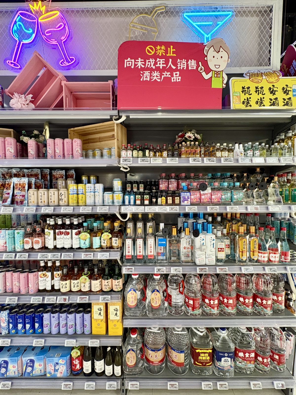 On December 3, at a New Century Department Store in Chongqing Liangjiang New Area, liquor shelves are lined with a growing array of fruit-flavored and low-alcohol drinks. (Photo/Zheng Ran)