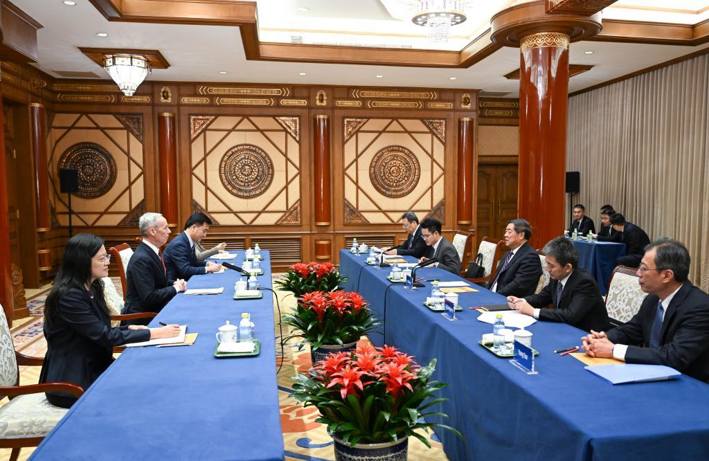 Chinese Vice Premier He Lifeng, also a member of the Political Bureau of the Communist Party of China Central Committee, meets with Craig Allen, Senior Counselor at the Cohen Group, in Beijing, capital of China, Dec. 9, 2025. (Xinhua/Zhang Ling)