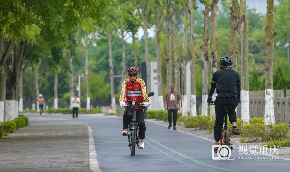 Residents cycle and stroll along the tree-shaded Li Jia Mountain City Trail in Liangjiang New Area. (Photo/Zhang Jinhui)
