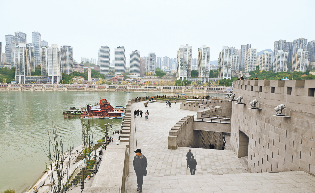 On December 4, residents stroll along the riverside walkway between Chaotianmen and Hongyadong in Chongqing. (Photo/Luo Bin, Visual Chongqing)