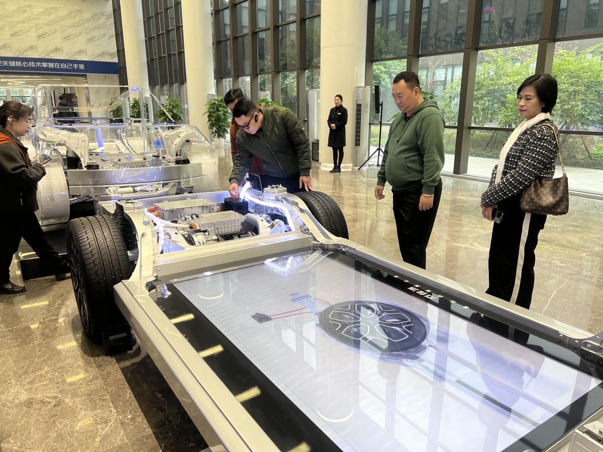 Guests are experiencing firsthand the smart features of Chongqing-made NEVs. (Photo/Deng Nan)