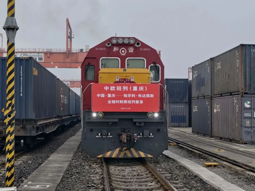 On November 30, a China-Europe Railway Express loaded with automotive parts, electronics, and daily goods departed from Chongqing Tuanjiecun Railway Station, heading towards Budapest, Hungary. (Photo/Chongqing International Logistics Hub Park)