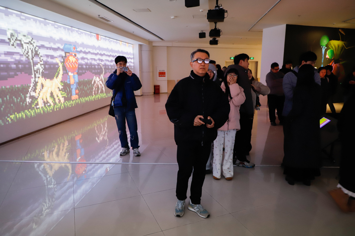 A centerpiece of the show is Feng Mengbo's Long March: Restart, an interactive game installation previously exhibited at the Museum of Modern Art in New York. Inspired by his 1994 painting Game Over: Long March, which reimagined the Communist revolution through the aesthetic of 8-bit video games, Feng transformed the static image into a playable experience in 2009. Players traverse symbolic landscapes from the Long March, merging historical narrative with digital interaction.