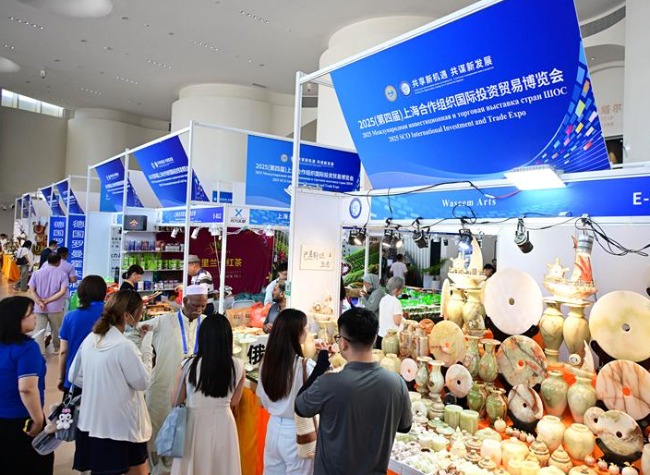 Participants attend the 2025 SCO (the Shanghai Cooperation Organization) International Investment and Trade Expo at the Qingdao SCODA Pearl International Expo Center in Qingdao, east China's Shandong Province, July 18, 2025. (Photo/Xinhua)
