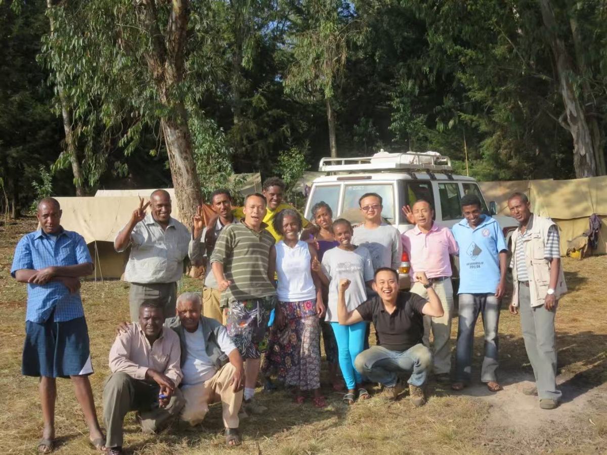 He Tao (second row, first from right) on his first visit to Ethiopia in 2013. (Photo provided by the interviewee)