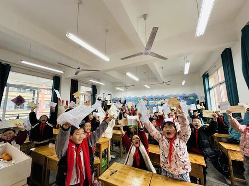 At Mingyue Primary, the scene was equally lively. Students shared excerpts with classmates: "I love paper-cutting," "Let's be friends," "Life has challenges, but we can overcome them." Simple words, yet they built genuine connections.