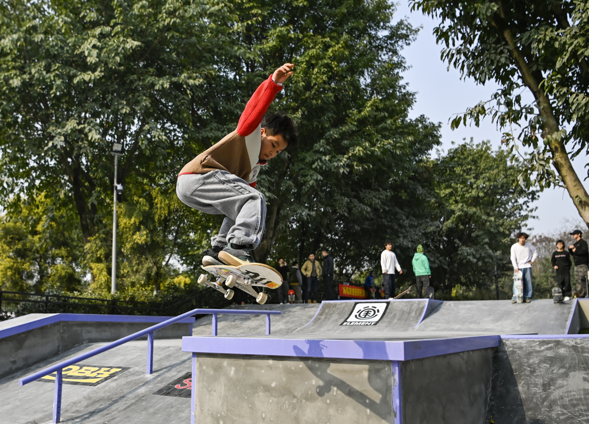 Local talent was also prominent. Li Bowei, 11, recently won a street-style gold medal at The 7th Games of Chongqing. Now a nationally certified athlete, he balances school and intense training. "I manage my homework during breaks so I can train right after school," Li explained.