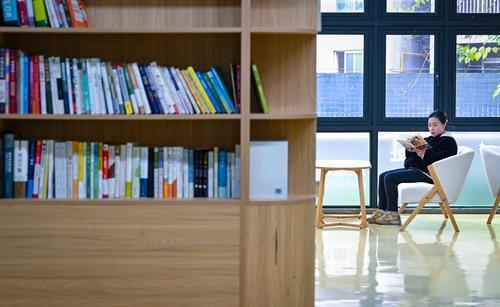 Residents read at a community building center in Yangjiaping Subdistrict, Jiulongpo District. (Photo/Zhang Jinhui)