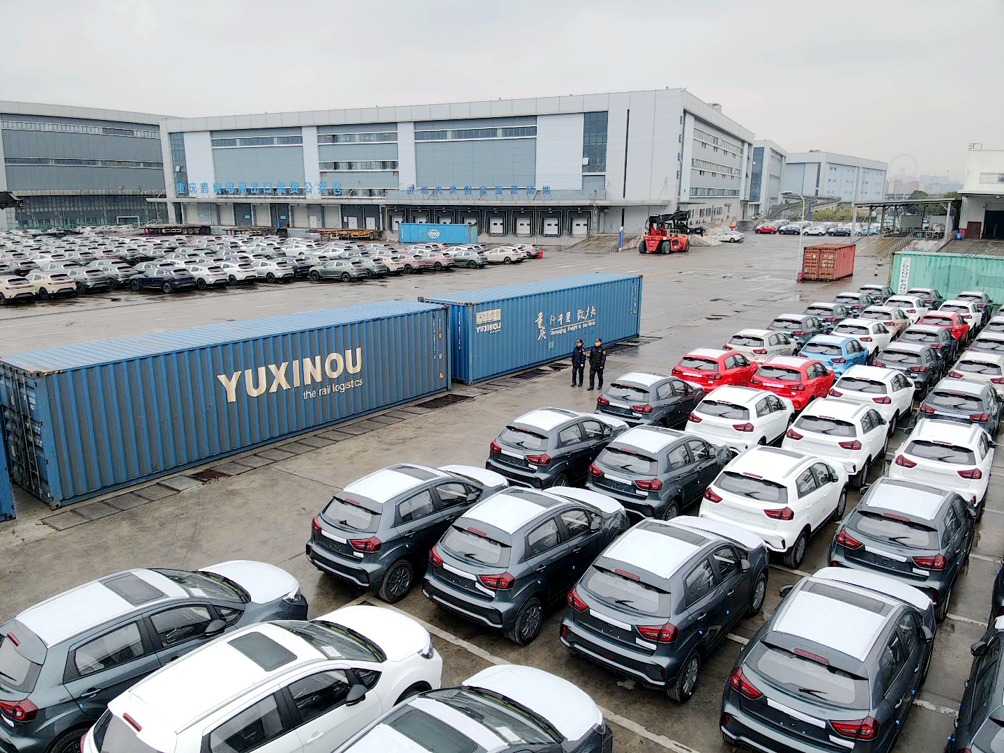 Chongqing-made vehicles are parked at the Chongqing rail port for export shipment. (Photo/Chongqing Customs District)