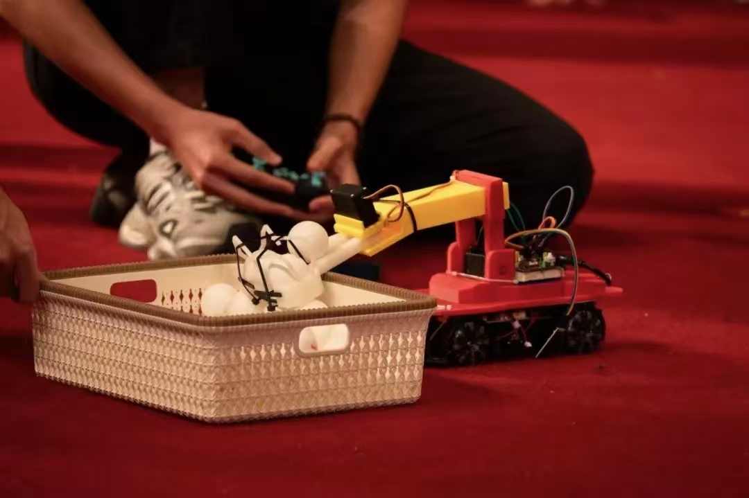 Chongqing University of Technology students participate in the Table Tennis Grasping Robot Innovation Design Competition, where they compete with robotic arms. (Photo provided by the interviewee)