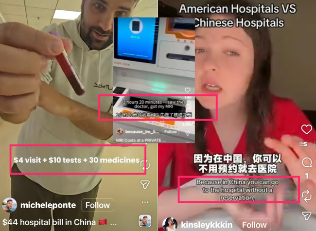 Videos shared online show foreign visitors describing their experiences receiving treatment at Chinese hospitals, including details about medical procedures and associated costs. (Photo/Screenshot from social media)