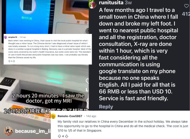 Screenshots of comments posted on international websites and social media platforms show users from different countries sharing their views and personal experiences with China’s medical system. (Photo/Screenshot from social media)