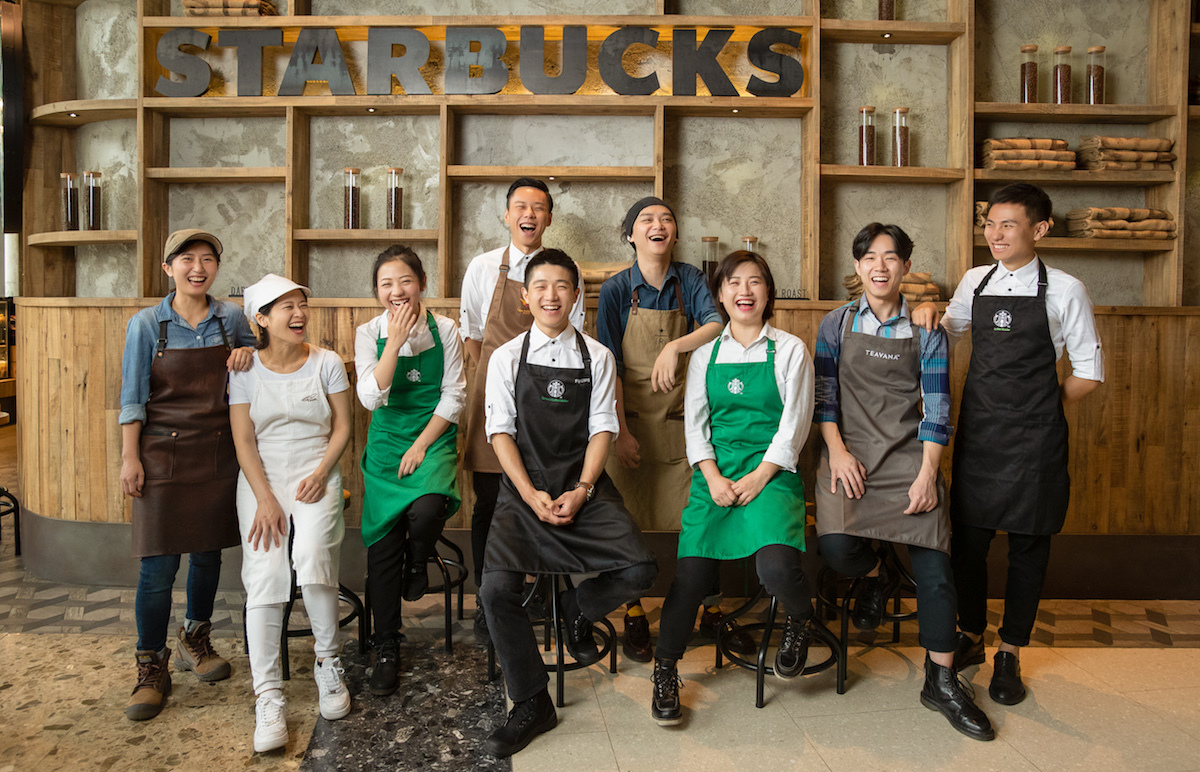 Starbucks Partners are taking a group photo in a store. (Photo/Starbucks China)
