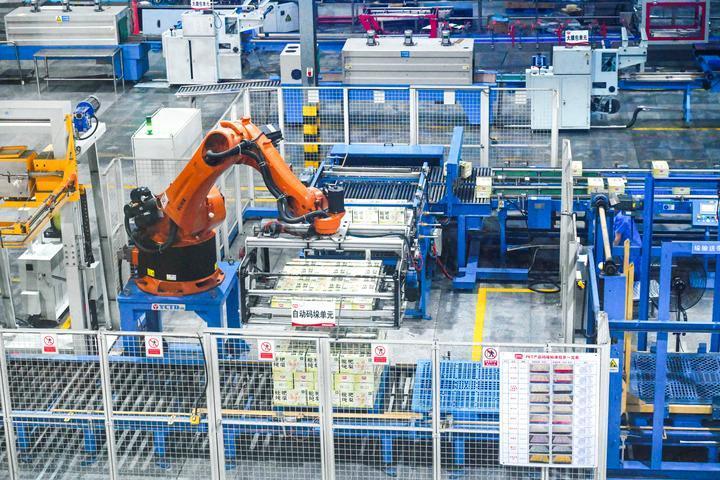 A robotic arm is seen at the smart workshop of Panpan Foods in Jinjiang, southeast China's Fujian Province, Aug. 19, 2025. (Photo/Xinhua)