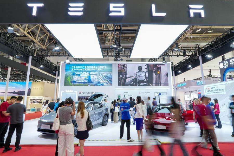 People visit the booth of TESLA at the Smart Vehicle Chain area of the third China International Supply Chain Expo (CISCE) in Beijing, capital of China, July 19, 2025. (Photo/Xinhua)