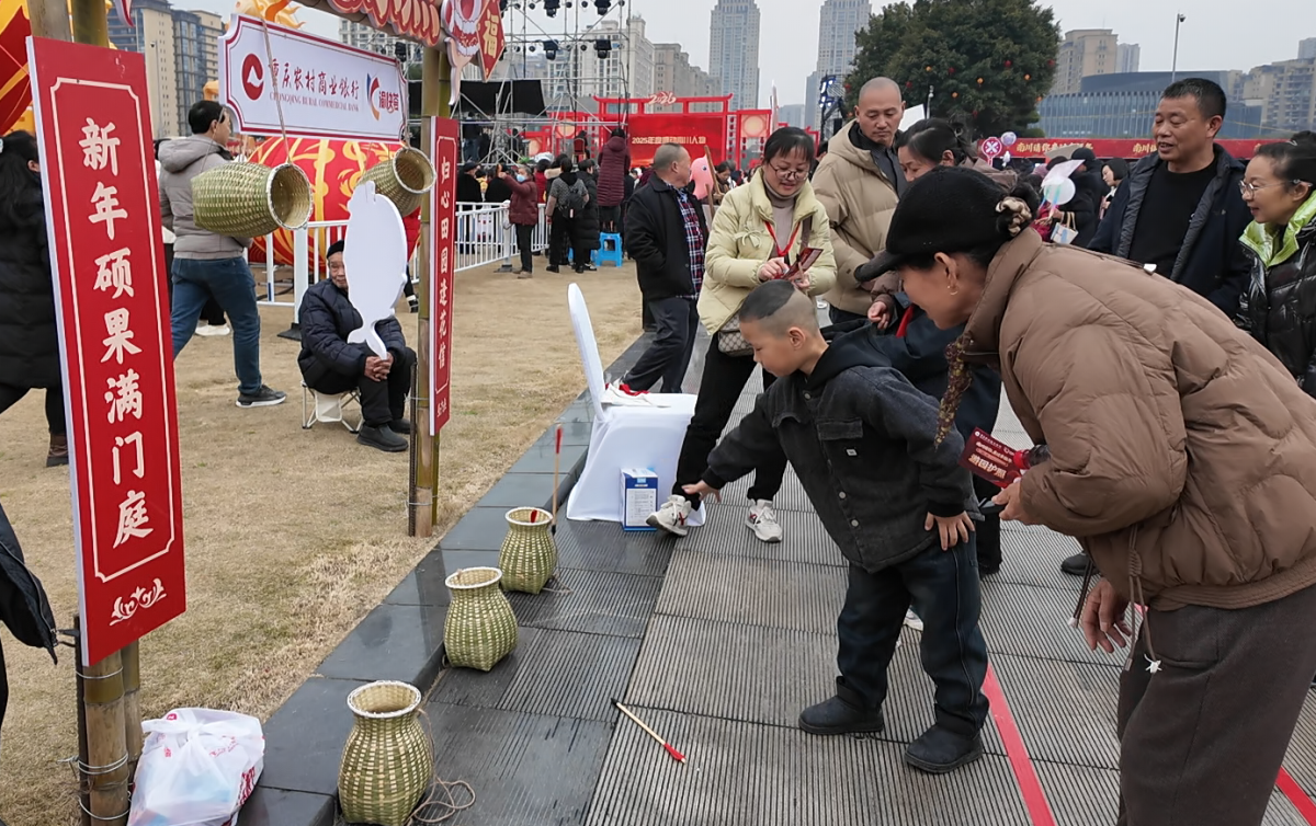 The spirit of these ancient games was perfectly captured by the younger generation. At the "Pitch-pot" station, iChongqing reporter spoke with a young girl who had just successfully landed several arrows. Demonstrating a surprising grasp of the game's philosophy, she summarized her technique: "The key to pitch-pot is controlling the strength—neither too heavy nor too light." Beyond the game, she reflected on the deeper meaning of the holiday, saying, "I love the spring festival! It is a beautiful time when the whole family can be together for a reunion."