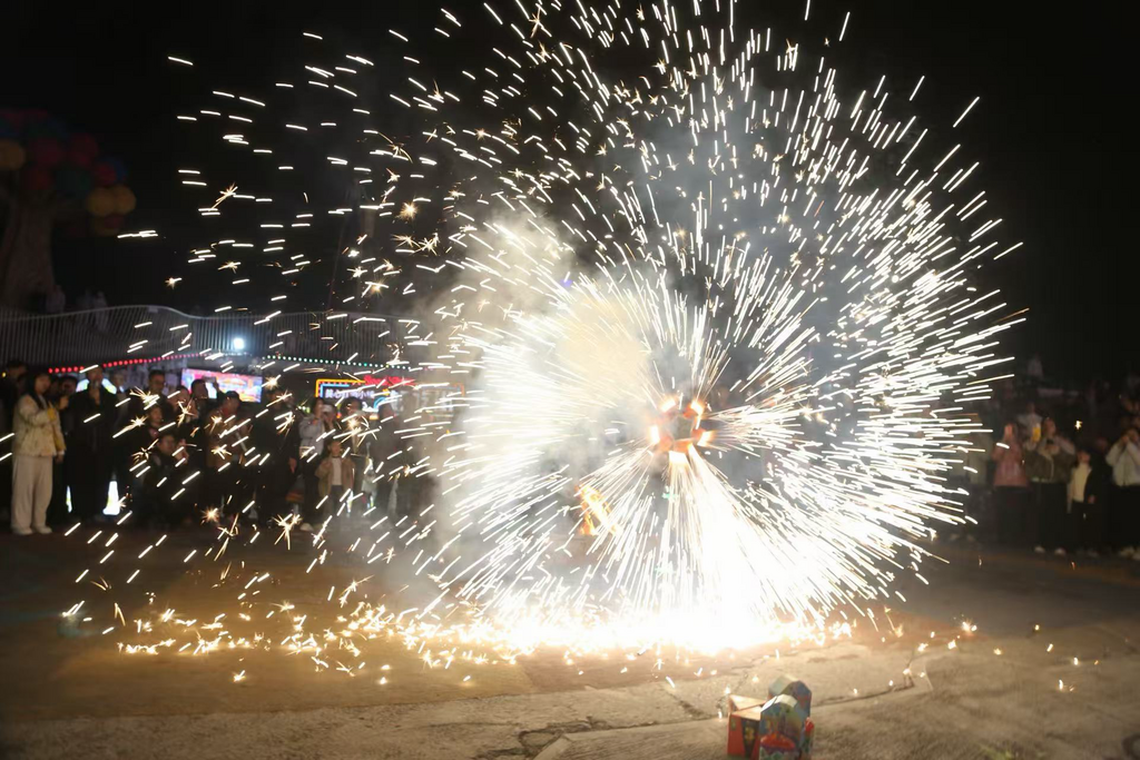 A traditional "Datiehua" performance lights up the night at Meixin Wine Town. (Photo/Meixin Wine Town)
