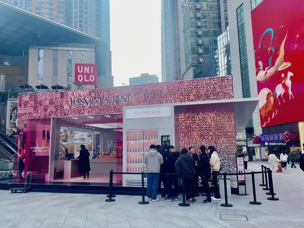 For example, shoppers flocked to a limited-time YSL Love Store pop-up, promoted as the brand's largest in China by floor area and its first stop in southwest China. Other events included an AI-generated New Year photo experience and interactive holiday activities. Sales across 20 major shopping districts in Chongqing’s central urban area grew by 6.5% from the previous year, data revealed.