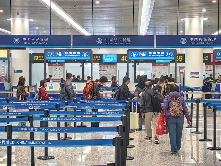 Travelers line up for immigration inspection. (Photo/Chongqing General Station of Exit and Entry Frontier Inspection)