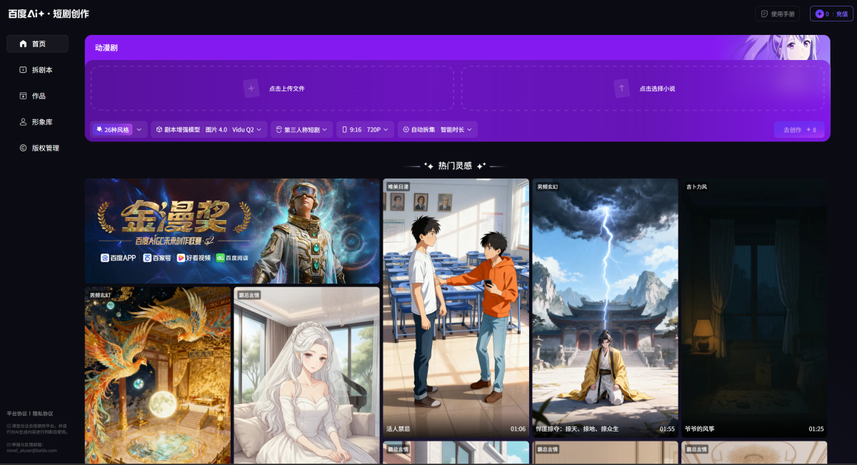 Interface of an AI-powered animation production platform. (Graphic/Luo Huxin)