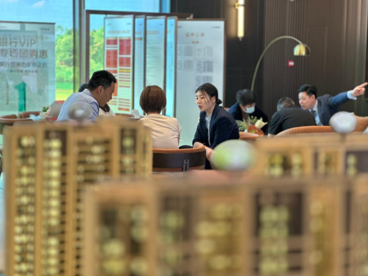 Homebuyers inquire at a property sales office. (Photo/Zhang Zhongren)