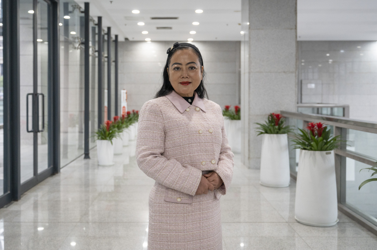 Yan Qi, a deputy to the National People's Congress and Chairman of Taoranju, a well-known restaurant in Chongqing. (Photo/He Saige)