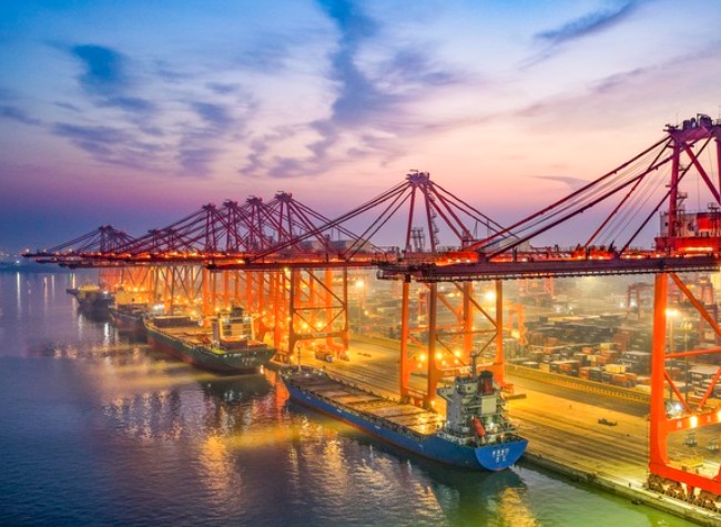 An aerial drone photo taken on Dec. 15, 2025 shows vessels loading and unloading containers at a container dock of Tangshan Port in Tangshan, north China's Hebei Province. (Photo/Xinhua)