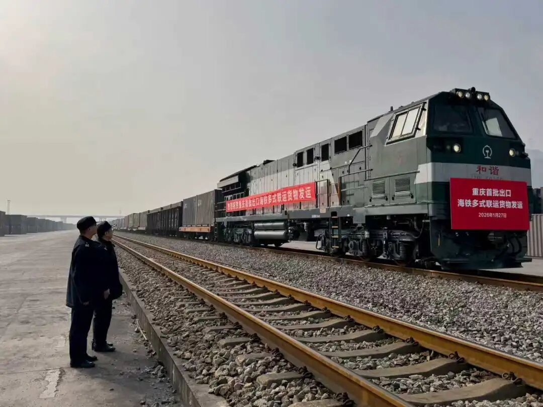 On January 27, 2026, officers from Chongqing Customs District conducted on-site supervision of the city's first export shipment transported via sea-rail intermodal transport in Chongqing. (Photo/Chongqing Customs District)