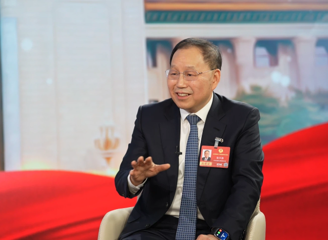 Zhang Xinghai, a member of the CPPCC National Committee and Chairman of Seres, gave an interview to the media. (Photo/Luo Huxin)